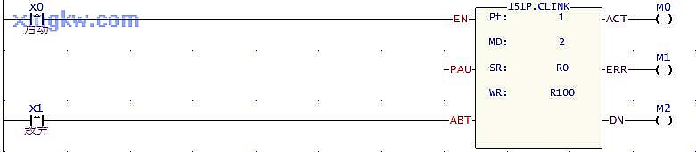 【控制要求】按X0,啟動FUN151.CLINKMD2通訊控制指令進(jìn)入接受數(shù)據(jù)狀態(tài)按X1則放棄接受,亦即關(guān)閉此命令。【必要參數(shù)設(shè)置】