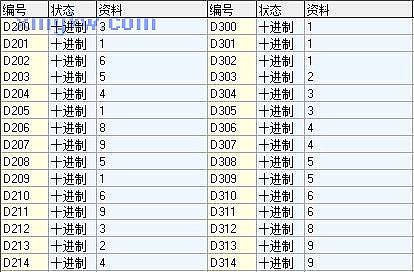 D200~D214 15個原始數(shù)據(jù)存放的存放地址列表